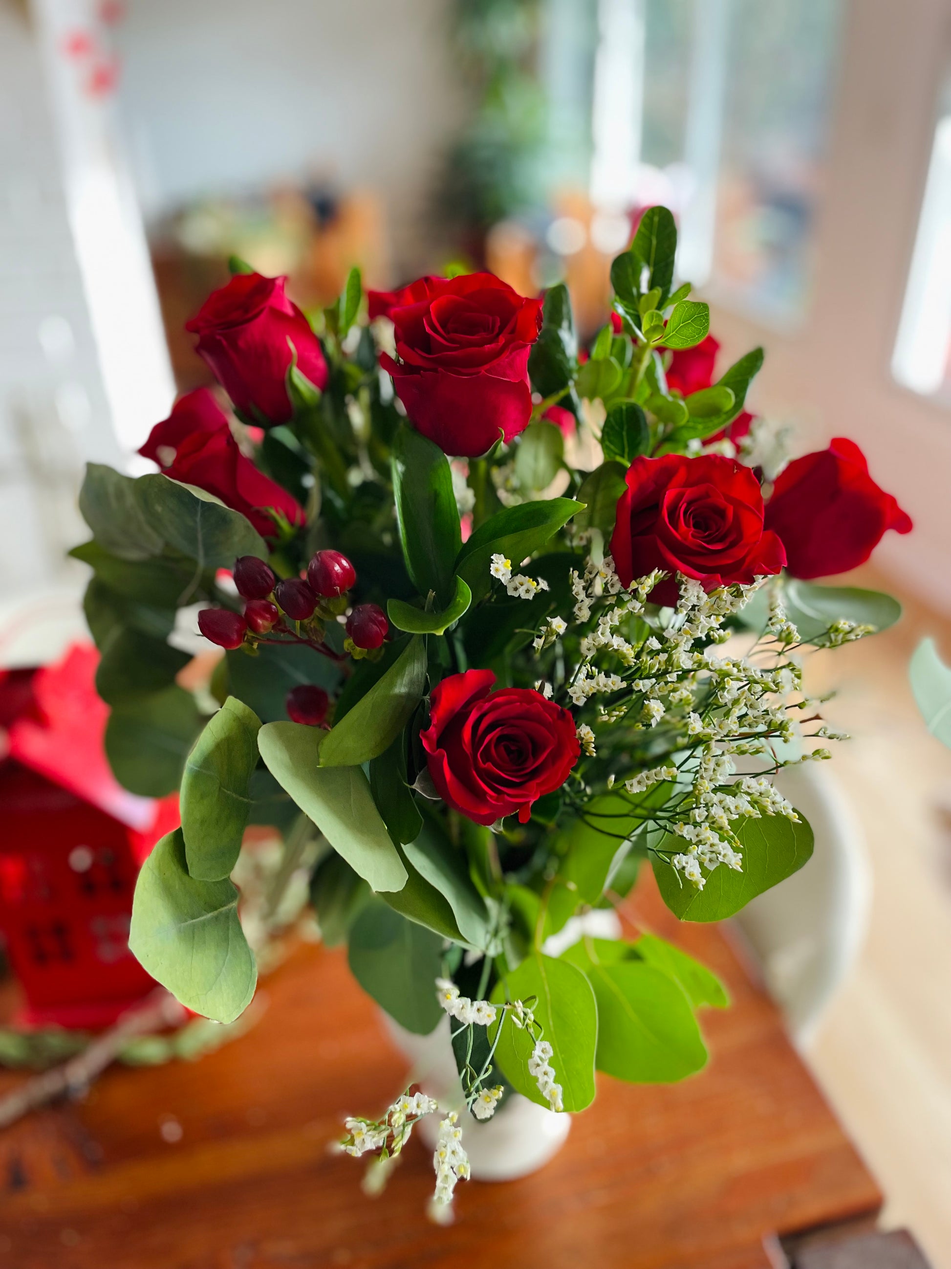 Nothing captures the essence of love quite like the deep, rich hue of red. One dozen ruby red roses, paired with sprigs of vibrant red berries, symbolize the true meaning of love and devotion. Place your order today to share this timeless expression of affection.